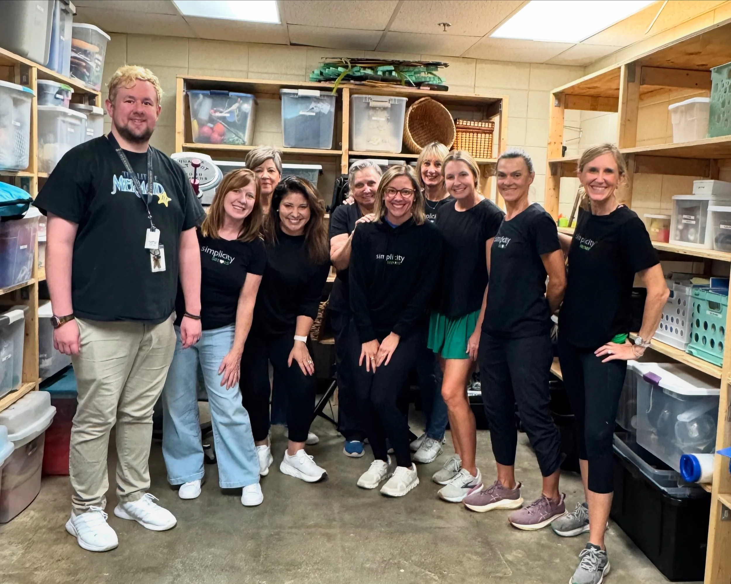 Fourteen volunteers with Simplicity Serves organized six storage rooms in two days at Families Forward